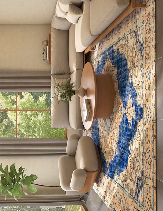 - Trending Styles: Handwoven jute, distressed Persian rugs, kilims with natural dyes